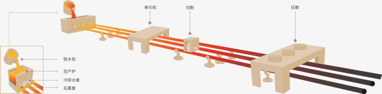 恒工引進連續鑄鐵技術,自主研發出一系列連續鑄鐵生產線,經過多年的技術改良和創新,所生產的連續鑄鐵相比其他材料有組織細密、內部無缺陷、性能優越,成品率高等優點,現在恒工精密已經發展成為大型的連續鑄鐵供應基地。